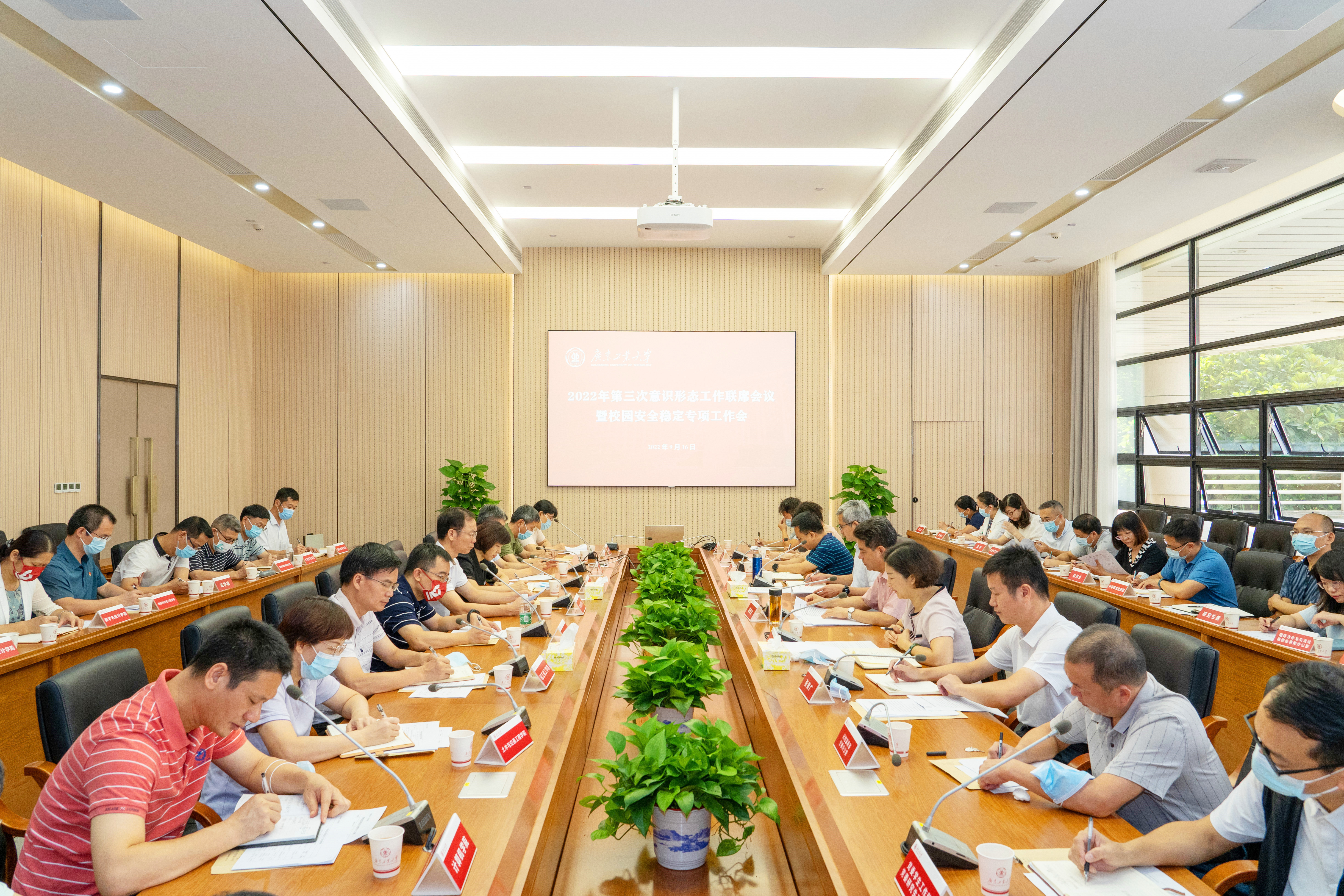 9月16日上午,学校党委在大学城校区大讲堂第一会议室召开2022年第三次意识形态工作联席会议暨校园安全稳定专项工作会,分析研判当前意识形态领域风险隐患,全面部署学校意识形态安全和校园安全稳定工作。校党委书记胡钦太出席会议并讲话,副书记朱蔚蔚、副校长陈卓武出席会议,学校意识形态工作领导小组成员单位主要负责人及二级党组织书记参加会议。朱蔚蔚主持会议。