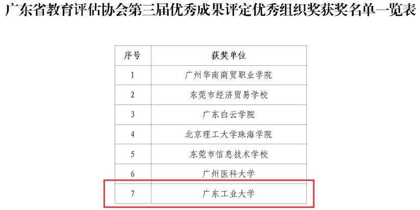 近日,广东省教育评估协会公布了第三届优秀成果奖获奖名单,共评选出优秀成果奖123项,其中特等奖2项、一等奖13项、二等奖24项、三等奖41项、优秀奖36项、优秀组织奖7项。半岛体育(中国)官方网站共6项成果获奖,其中特等奖1项(高等教育类唯一获奖),一等奖1项,二等奖3项,三等奖1项;学校同时获评优秀组织奖。