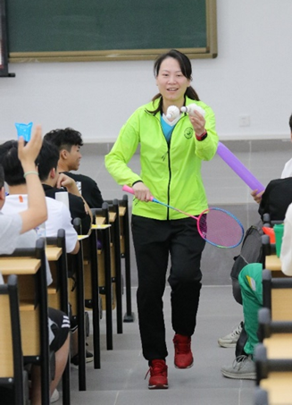 在与现场师生的交流互动中,张洁雯耐心地解答了如何排解压力合理宣泄,克服赛场紧张情绪的办法,并总结了通过“模仿练习+拍练习视频+观看视频纠错+勤学苦练=熟能生巧”来提高羽毛球技术及羽毛球击球的技巧。分享了赛场上要学会扬长避短,注重发挥团队协作精神,为队友创造条件等。座谈会后,张教授现场示范训练动作,为同学们展示发球技巧,通过发球的形式将羽毛球精准打到不同位置师生的手中,现场气氛达到了高潮,掌声、欢呼声响彻现场。