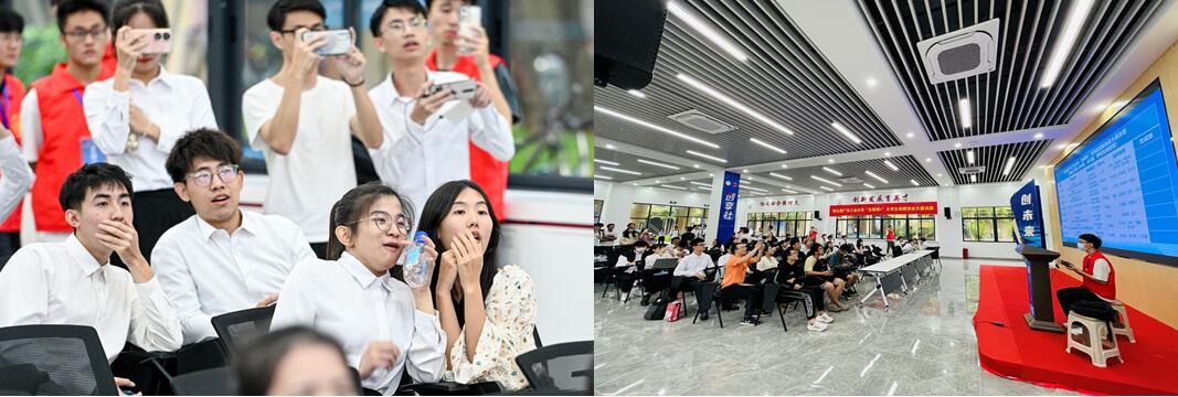 随后,高教主赛道和“青年红色筑梦之旅”赛道同时开赛,并实时出分,在融合中心报告厅进行现场公布。赛场上,各团队从容展示、沉着应答,充分展示了“我敢闯、我会创”的青春风采。经过激烈角逐,《ACFLY博睿飞控—半开源飞控开拓者》《沧海之脊——致力于海洋工程专用新材研发》《“肠”治久安——结直肠癌早诊早治一体化解决方案的创新者》三个项目斩获高教主赛道金奖,《橙丰魄浪——全链条果园赋能乡村振兴模式首创者》斩获“青年红色筑梦之旅”赛道金奖。