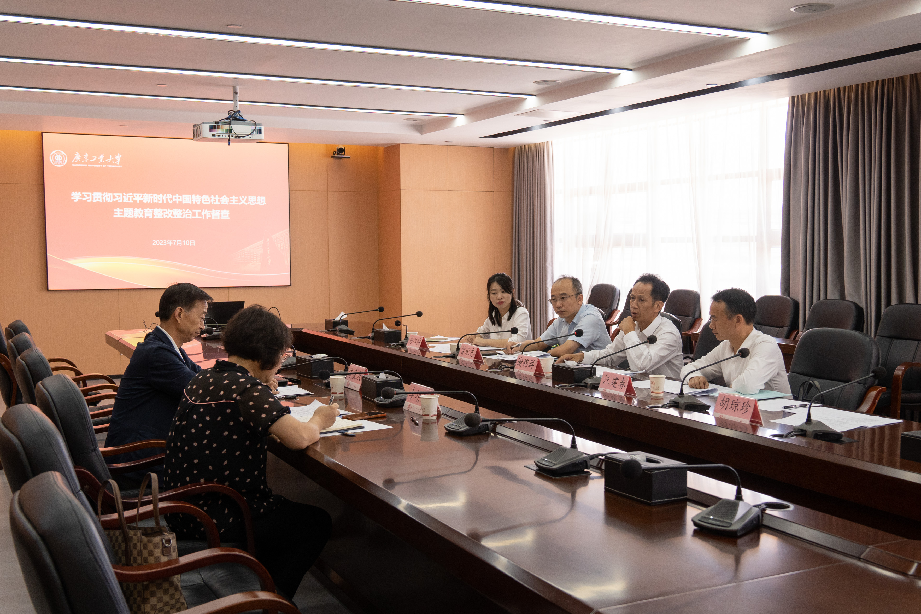 7月10日,省委主题教育办公室整改整治组安效宏、万蕊嘉,省委第十七巡回指导组副组长谢锦群,组员汪建春、曾承志、胡琼珍、易心怡到校指导学校调研成果转化和整改整治工作。学校主题教育领导小组组长、校党委书记胡钦太,学校主题教育领导小组副组长、校党委副书记陈良友,党委常委、党委组织部、党委统战部部长李靖茂陪同指导。