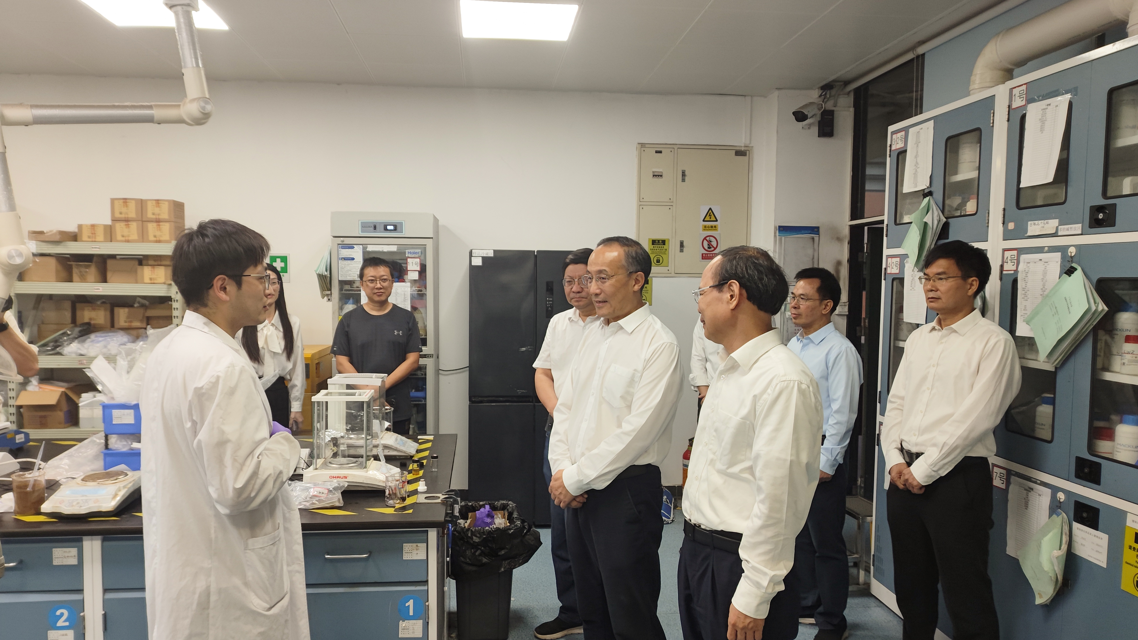 张涛和孙宏伟参观学校化工实验室