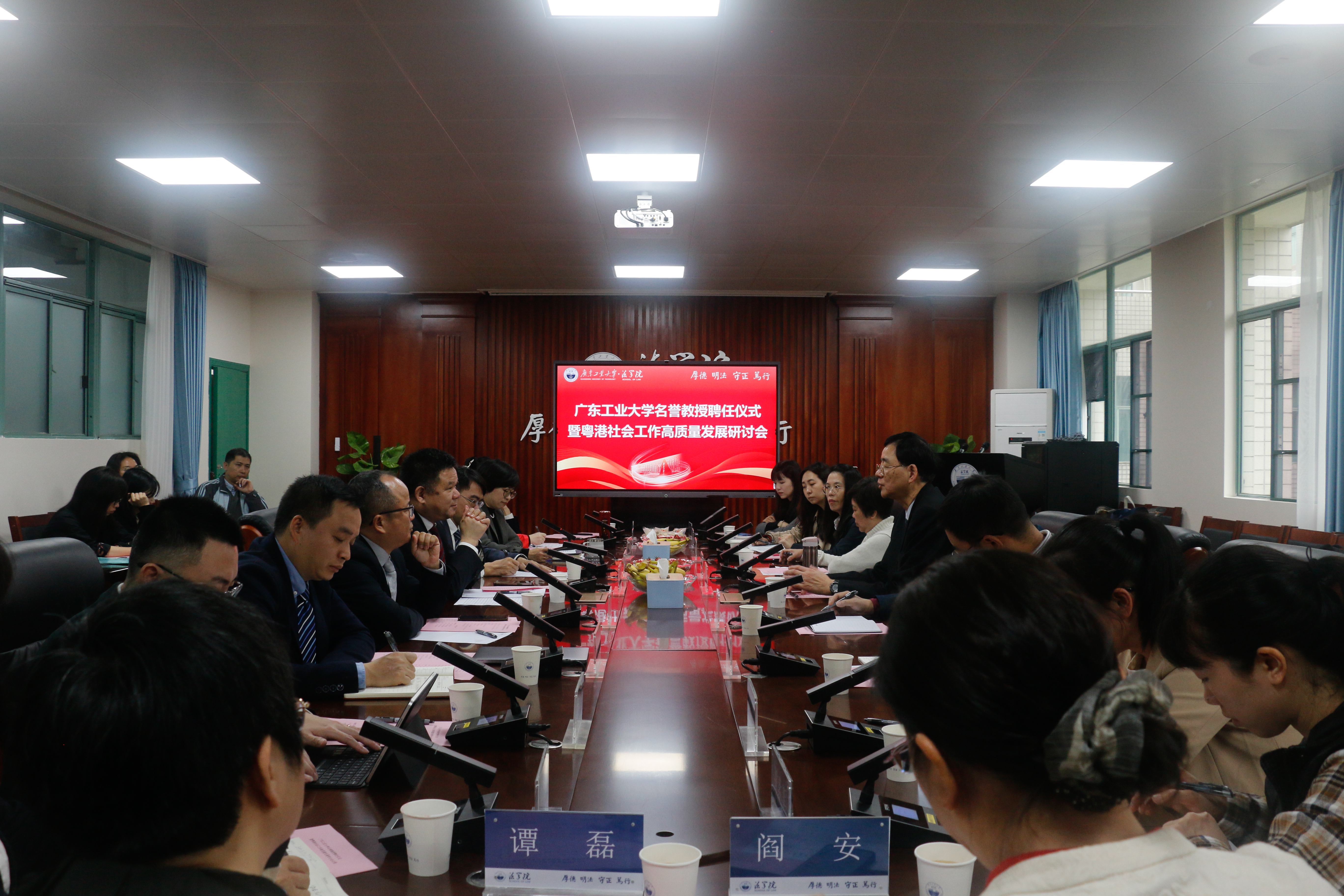 聘任仪式结束后,与会人员围绕粤港社会工作高质量发展进行深入讨论。石丹理分享了香港理工大学的办学经验及社会工作教育成果。东源县教育局相关负责人介绍了东源县教育现状和青少年发展需求。法学院相关负责人介绍了社会工作学科建设思路。三方就青少年社会工作实务、科研平台建设、国际学术会议举办等方面达成合作共识。